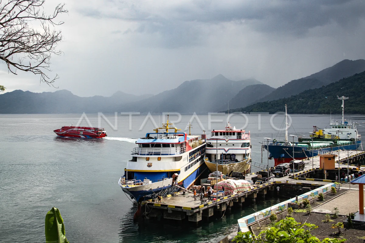 Sejumlah kapal penumpang bersandar di dermaga Pelabuhan Ulu Siau, Sitaro, Sulawesi Utara, Selasa (3/12/2024). Badan Pusat Statistik (BPS) Provinsi Sulawesi Utara mencatat jumlah penumpang angkutan laut pada Oktober 2024 sebanyak 51.799 orang untuk keberangkatan/embarkasi yaitu naik 4,62 persen dari September sebanyak 49.512 orang, sementara kedatangan/debarkasi mencapai 51.780 orang atau naik 4,66 persen dari bulan sebelumnya sebanyak 49.476 orang. ANTARA FOTO/Yegar Sahaduta Mangiri/YU/nym.
