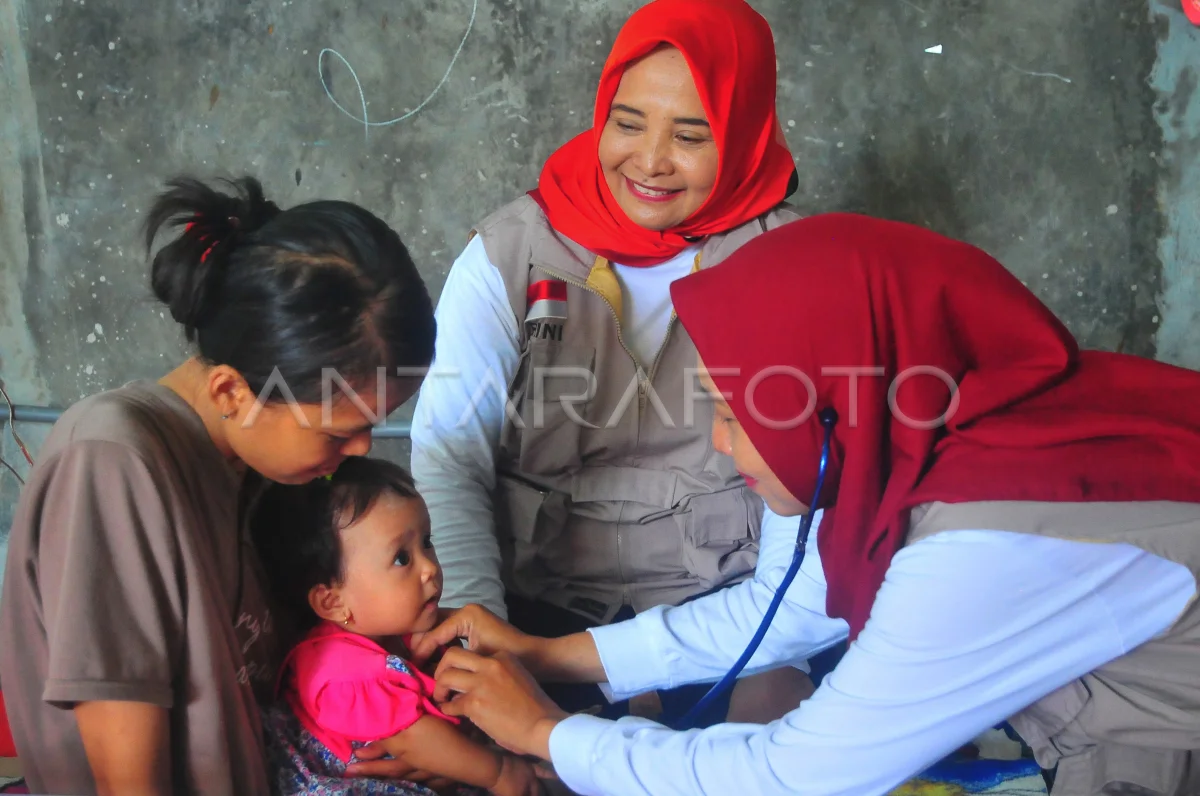 Petugas memeriksa kesehatan anak balita di posko pengungsian korban banjir, Desa Pasuruan Lor, Jati, Kudus, Jawa Tengah, Sabtu (25/1/2025). Pemeriksaan secara rutin tersebut untuk memastikan kesehatan para pengungsi korban banjir agar terhindar dari berbagai penyakit. ANTARA FOTO/Yusuf Nugroho/Spt.