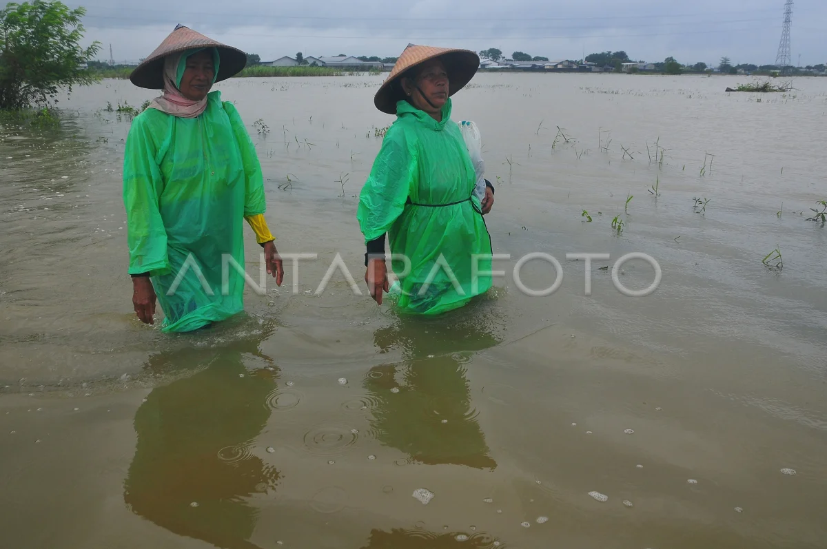 Warga berjalan menerobos jalan yang tergenang banjir di Dukuh Karangturi, Desa Setrokalangan, Kaliwungu, Kudus, Jawa Tengah, Jumat (31/1/2025). Menurut warga setempat, akses jalan utama sepanjang sekitar satu kilometer tersebut terendam banjir akibat meluapnya Sungai Wulan sejak Kamis (23/1/2025), dan sebanyak seribuan warga dari 450 KK terisolasi sehingga harus menggunakan perahu hingga menerobos banjir untuk menjalankan aktivitas sehari-hari. ANTARA FOTO/Yusuf Nugroho/foc.