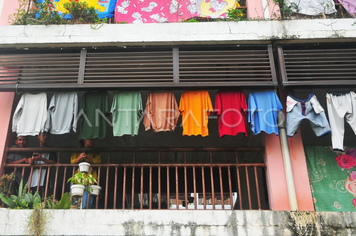 Warga berdiri di kawasan Rumah Susun Sederhana Sewa (Rusunawa) Bakalan Krapyak, Kaliwungu, Kudus, Jawa Tengah, Minggu (16/3/2025). Menteri Perumahan dan Kawasan Permukiman (PKP) Maruarar Sirait mengatakan, selain berfokus pada pembangunan rumah baru bagi Masyarakat Berpenghasilan Rendah (MBR), program 3 juta rumah juga menyasar renovasi sekitar 26 juta rumah tidak layak huni. ANTARA FOTO/Yusuf Nugroho/YU