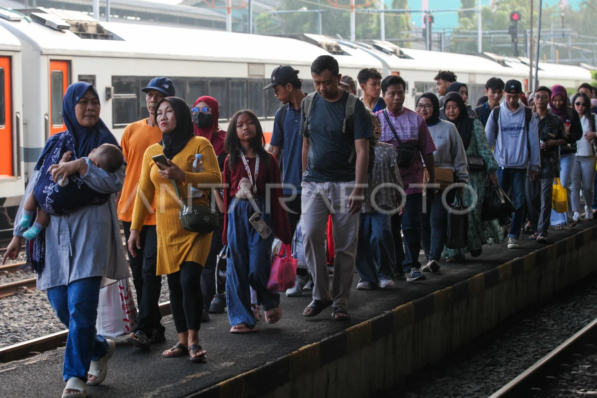 Arus penumpang KA di Stasiun Surabaya Pasar Turi