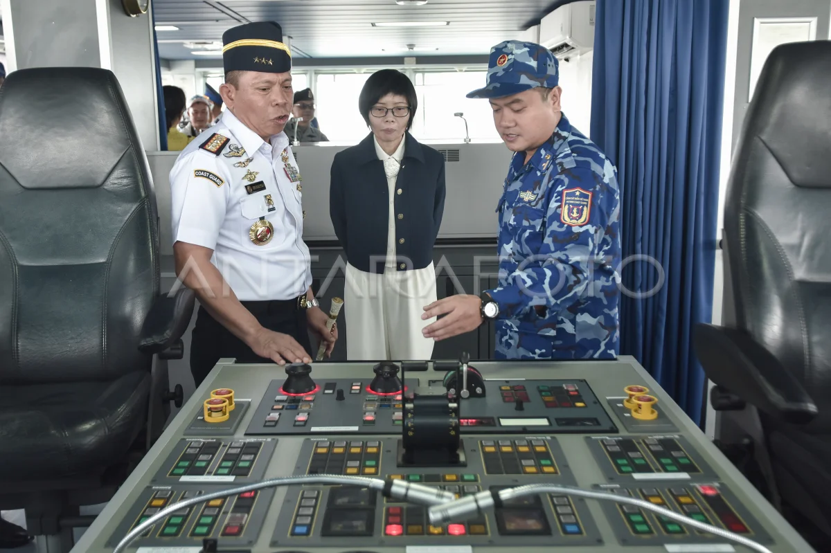 Kepala Badan Keamanan Laut (Bakamla) Laksamana Madya TNI Irvansyah (kiri) didampingi Duta Besar Vietnam untuk ASEAN Ton Thi Ngoc Huong (tengah) mendengarkan penjelasan dari personel Vietnam Coast Guard (VCG) tentang teknologi kapal CSB 8001 di Dermaga Nusantara 1, Pelabuhan Tanjung Priok, Jakarta Utara, Senin (25/8/2025).Kunjungan VCG pada 25-29 Agustus 2025 itu dalam rangka mempererat hubungan kerja sama dengan Bakamla dan akan menyelenggarakan latihan bersama untuk meningkatkan kemampuan saat patroli keamanan laut. ANTARA FOTO/Fakhri Hermansyah/rwa.