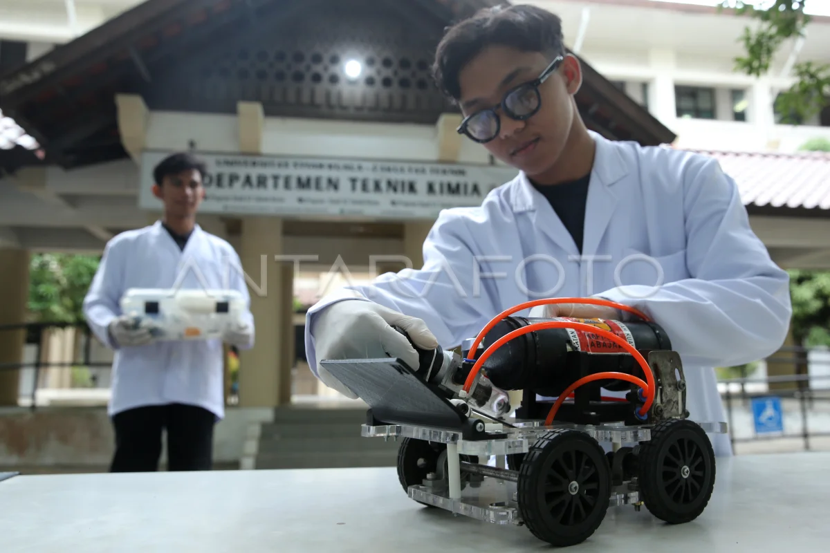 Mahasiswa Fakultas Teknik Universitas Syiah Kuala (USK) memperlihatkan mobil mini yang diberi nama Koetaradja Aeromoro bertenaga Pneumatik di Banda Aceh, Aceh, Rabu (27/8/2025). Mobil mini Koetaradja Aeromoto berhasil meraih medali emas pada ajang internasional Chem-E-Car Competition di Tiongkok awal Agustus lalu itu dapat bergerak dengan memanfaatkan reaksi kimia sederhana yang dinilai efisien dan ramah lingkungan. ANTARA FOTO/Irwansyah Putra/agr