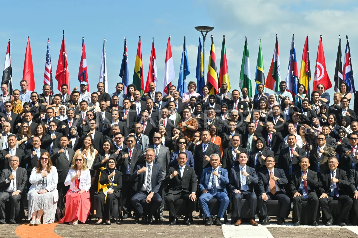 Kepala Badan Narkotika Nasional (BNN) Komjen PolÊSuyudi Ario Seto (baris depan, tengah), Deputi Hukum dan Kerja Sama BNN Irjen Pol Agus Irianto (baris depan, kelima kanan) dan Deputy Director of International Narcotics and Law Enforcement Affairs (INL) US Embassy Jakarta Justin Brown (baris depan, keempat kanan) berfoto dengan delegasi saat pembukaan kegiatan International Society of Substance Use Professionals (ISSUP) Regional Conference 2025 di Kuta, Badung, Bali, Rabu (17/9/2025). Kegiatan yang diselenggarakan BNN berkolaborasi dengan ISSUP itu diikuti 505 peserta dari 48 negara sebagai forum diskusi dan berbagi wawasan dalam upaya memperkuat strategi global serta meningkatkan sinergi di bidang penanggulangan penyalahgunaan narkoba. ANTARA FOTO/Fikri Yusuf/aww.