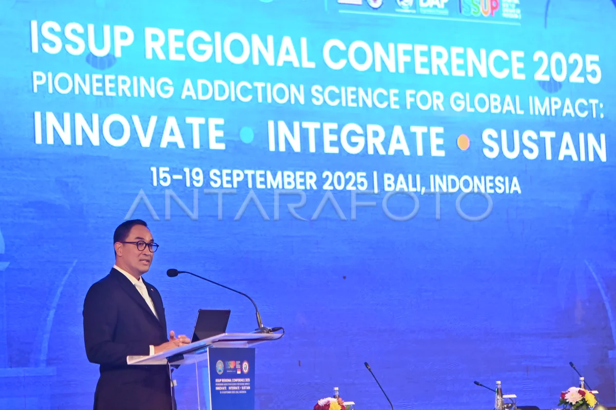 Kepala Badan Narkotika Nasional (BNN) Komjen PolÊSuyudi Ario Seto menyampaikan sambutan saat pembukaan International Society of Substance Use Professionals (ISSUP) Regional Conference 2025 di Kuta, Badung, Bali, Rabu (17/9/2025). Kegiatan yang diselenggarakan BNN berkolaborasi dengan ISSUP itu diikuti 505 peserta dari 48 negara sebagai forum diskusi dan berbagi wawasan dalam upaya memperkuat strategi global serta meningkatkan sinergi di bidang penanggulangan penyalahgunaan narkoba. ANTARA FOTO/Fikri Yusuf/aww.