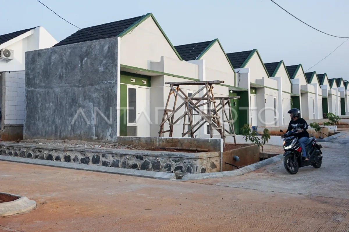 Pengendara sepeda motor melintas di sekitar rumah subsidi di Kabupaten Batang, Jawa Tengah, Sabtu (20/9/2025). Menteri Perumahan dan Kawasan Permukiman Maruarar Sirait memastikan bunga kredit pemilikan rumah (KPR) subsidi tidak akan naik dalam waktu dekat atau tetap pada level 5 persen sesuai instruksi Presiden Prabowo Subianto. ANTARA FOTO/Harviyan Perdana Putra/tom.