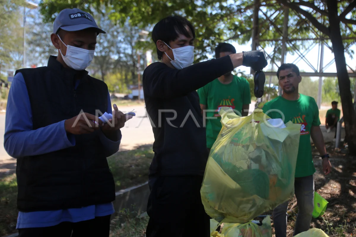 Komunitas Sahabat Pasar Rakyat menimbang kantong berisi sampah plastik dan sampah organik lainnya saat aksi peduli lingkungan di Pasar Al-Mahirah, Banda Aceh, Aceh, Minggu (21/9/2025). Gerakkan aksi peduli lingkungan membersihkan pusat perbelanjaan dari sampah itu merupakan rangkaian dari kegiatan Festival Pasar Rakyat dan sekaligus memperingati Hari Bersih Bersih Sedunia atau World Clean Up Day 2025. ANTARA FOTO/Ampelsa/bar