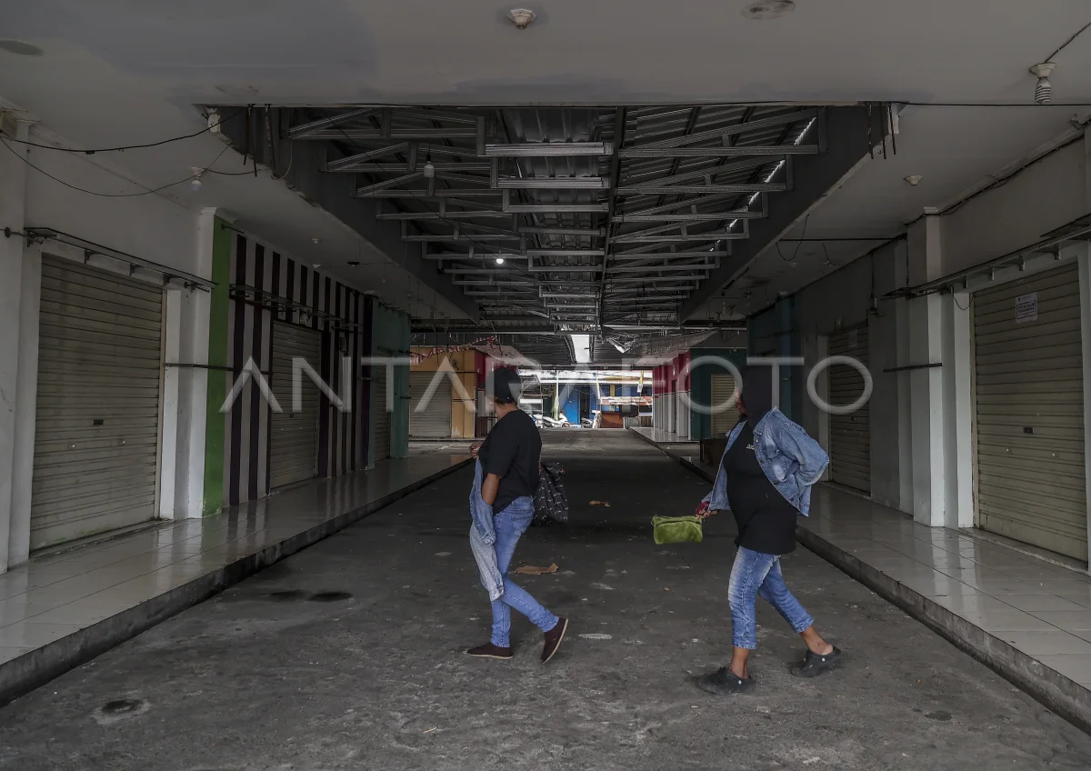 Kondisi pasar pakaian sepi pembeli dan ditinggalkan pedagang