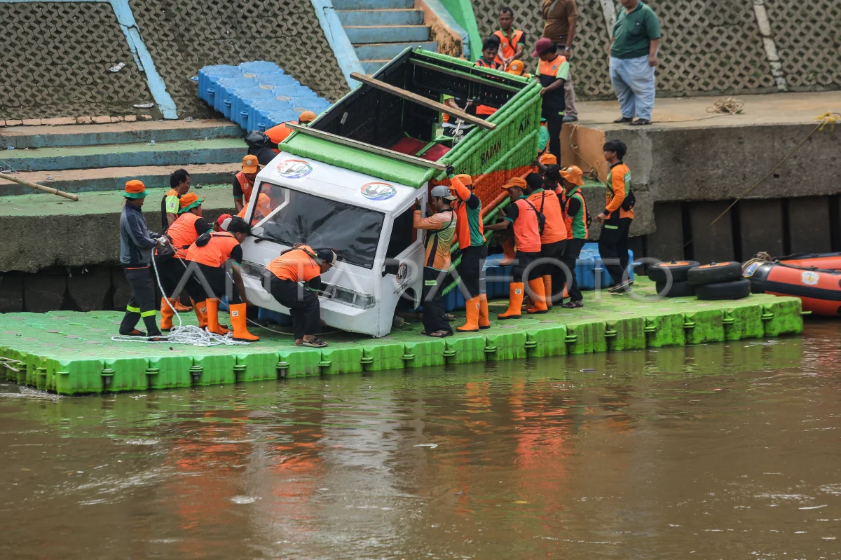 Petugas UPS Badan Air Kecamatan Kramat Jati menurunkan perahu dari limbah botol saat persiapan jelang Festival Cinta Lingkungan di Kali Ciliwung, Cikoko, Jakarta Selatan, Selasa (23/9/2025). Dinas Lingkungan Hidup (DLH) DKI Jakarta akan menggelar Festival Cinta Lingkungan (Cilung) pada tanggal 28 September 2025 dengan menampilkan parade 43 perahu yang terbuat dari limbah botol plastik dan kayu. ANTARA FOTO/Asprilla Dwi Adha/bar