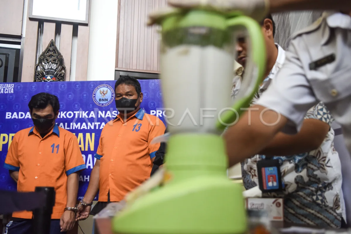 Tersangka menyaksikan pemusnahan barang bukti narkoba berupa sabu-sabu di dalam mesin pelumat di kantor Badan Narkotika Nasional (BNN) Provinsi Kalimantan Timur, di Samarinda, Rabu (24/9/2025). BNNP Kaltim memusnahkan barang bukti narkoba sebanyak 1.080,41 gram sabu-sabu, 146 butir ekstasi dan 447 gram ganja yaitu merupakan hasil dari empat kasus narkotika pada bulan Juli hingga Agustus 2025 yang berasal dari Pontianak, Kalimantan Barat dan Medan, Sumatera Utara. ANTARA FOTO/M Risyal Hidayat/nym.