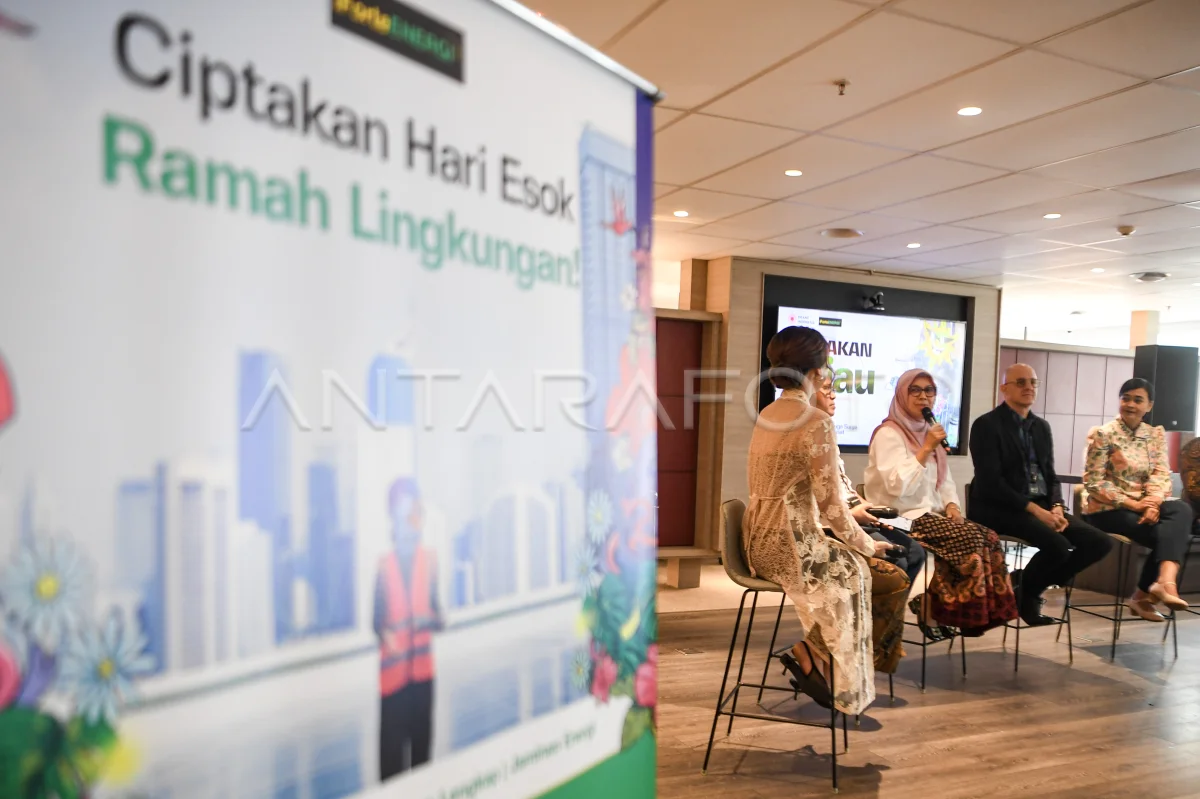 Direktur Aneka Energi Baru dan Energi Terbarukan Kementerian ESDM Andriah Feby Misna (ketiga kanan) bersama Head of Corporate Communications Grand Indonesia Annisa Hazarini (kanan), Director of Commercial Strategy and Innovation Iforte Mustafa Alayoubi (kedua kanan) dan Kepala Bidang Energi, Dinas Tenaga Kerja, Transmigrasi, dan Energi Provinsi DKI Jakarta Andono Warih (kedua kiri) memberikan paparanya pada peluncuran Pusat Tenaga Surya Terbesar di Pusat Perbelanjaan di Jakarta, Rabu (24/9/2025). Peluncuran panel surya dengan kapasitas sebesar 1,4 MWP dan luas area 6.812 sqm yang dilakukan Grand Indonesia bersama iForte Energi Nusantara tersebut dalam rangka mendukung transformasi ibu kota menuju kota yang lebih ramah lingkungan dan berkelanjutan. ANTARA FOTO/Muhammad Adimaja/nz