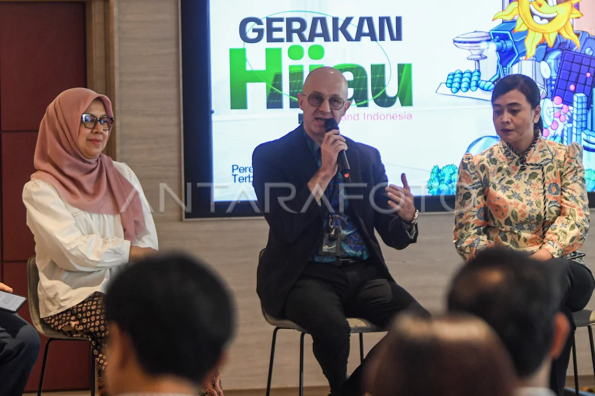 Director of Commercial Strategy and Innovation Iforte Mustafa Alayoubi (tengah) bersama Head of Corporate Communications Grand Indonesia Annisa Hazarini (kanan) serta Direktur Aneka Energi Baru dan Energi Terbarukan Kementerian ESDM Andriah Feby Misna (kiri) memberikan paparanya pada peluncuran Pusat Tenaga Surya Terbesar di Pusat Perbelanjaan di Jakarta, Rabu (24/9/2025). Peluncuran panel surya dengan kapasitas sebesar 1,4 MWP dan luas area 6.812 sqm yang dilakukan Grand Indonesia bersama iForte Energi Nusantara tersebut dalam rangka mendukung transformasi ibu kota menuju kota yang lebih ramah lingkungan dan berkelanjutan. ANTARA FOTO/Muhammad Adimaja/nz