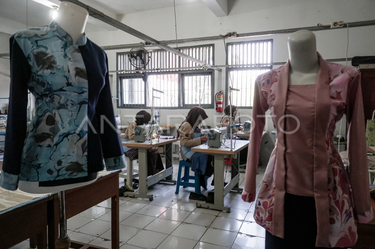 Siswa manjahit kain motif marbling suminagashi atau teknik melukis kain di atas air untuk kain batik seragam sekolah di SMK Negeri I Plupuh, Sragen, Jawa Tengah, Kamis (25/9/2025) Sekolah setempat membuat seragam batik mandiri dari hasil karya siswa untuk dikenakan setiap hari Kamis dengan tujuan mengasah kreativitas anak serta mengajak siswa menghargai hasil karya seni. ANTARA FOTO/Mohammad Ayudha/rwa.