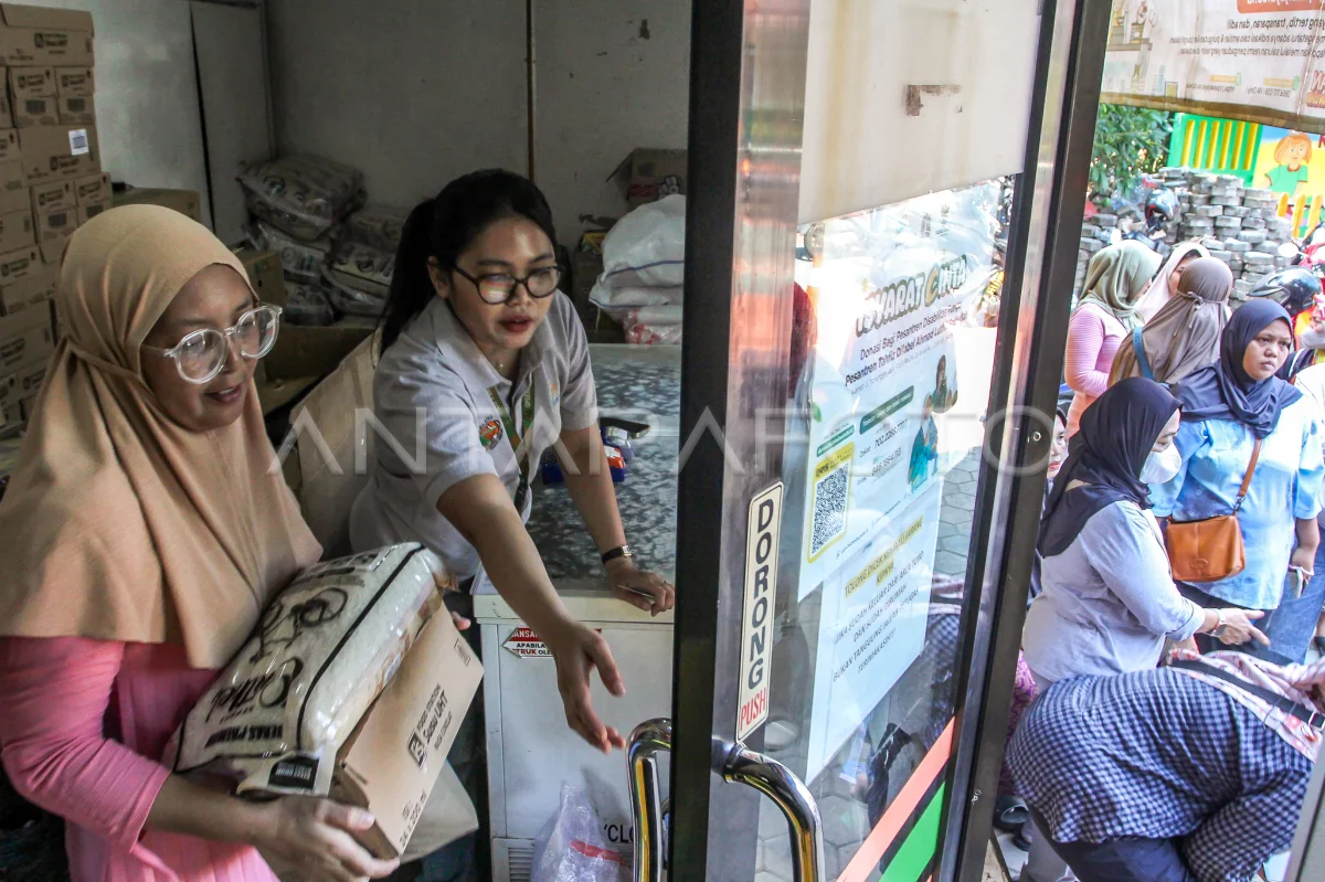 Petugas melayani warga membeli pangan murah di Gerai Bazar Perumda Pasar Jaya, Kelurahan Cipedak, Jagakarsa, Jakarta, Jumat (26/9/2025). Pemerintah Provinsi DKI Jakarta menyiapkan subsidi pangan sebesar 70 persen atau senilai Rp825 miliar untuk menyediakan 14 juta paket pangan murah bagi warga Ibu Kota dalam menjaga ketahanan pangan khususnya bagi keluarga prasejahtera. ANTARA FOTO/Naufal Khoirulloh/bay/rwa.