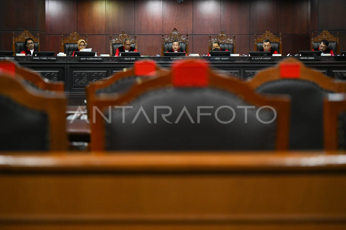 Ketua Mahkamah Konstitusi (MK) Suhartoyo (tengah) memimpin sidang gugatan undang-undang tentang Tabungan Perumahan Rakyat (Tapera) di Gedung Mahkamah Konstitusi, Jakarta, Senin (29/9/2025). Mahkamah Konstitusi mengabulkan gugatan terhadap Undang-Undang Nomor 4 Tahun 2016 tentang Tabungan Perumahan Rakyat (Tapera) karena dianggap bertentangan dengan UUD NRI Tahun 1945, sehingga kini para pekerja tidak wajib menjadi peserta Tapera. ANTARA FOTO/Fauzan/bar