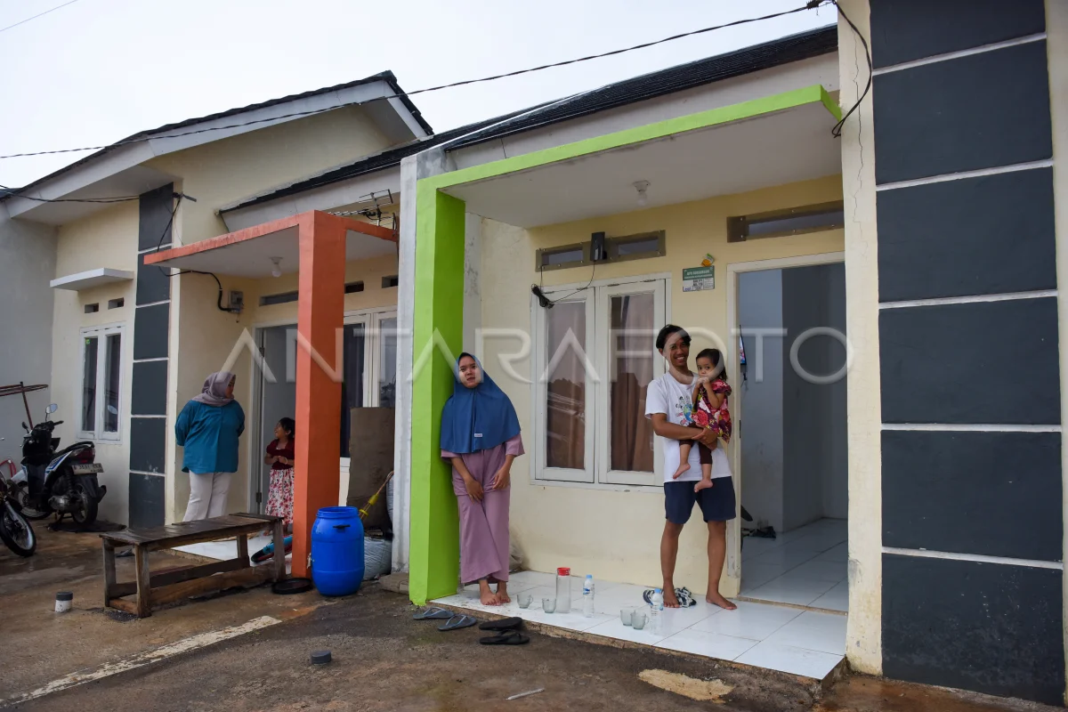 Warga berada di depan rumah KPR bersubsidi miliknya di Perumahan Pesona Kahuripan 10, Cileungsi, Kabupaten Bogor, Jawa Barat, Senin (29/9/2025). Kementerian Perumahan dan Kawasan Permukiman (PKP) menggelar akad massal sekaligus serah terima 26.000 unit rumah dalam program Kredit Pemilikan Rumah Sejahtera Fasilitas Likuiditas Pembiayaan Perumahan (KPR FLPP) yang ditujukan bagi 17 segmentasi perwakilan masyarakat berpenghasilan rendah (MBR) sebagai bagian dari komitmen dalam mensukseskan program Tiga Juta Rumah yang dicanangkan presiden. ANTARA FOTO/Indrianto Eko Suwarso/nz