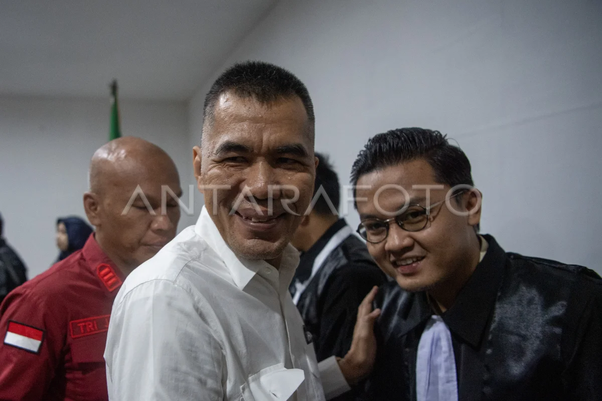 Mantan Ketua Komisi I DPRD Kota Palembang dari Fraksi Partai Nasdem Dedy Sipriyanto (tengah) berbincang dengan kuasa hukumnya usai menjalani sidang dakwaan di Pengadilan Tipikor PN Palembang Klas 1A khusus, Sumatera Selatan, Selasa (30/9/2025). Fitrianti Agustinda yang juga menjabat sebagai Ketua Palang Merah Indonesia (PMI) Kota Palembang periode 2019-2024 bersama suaminya mantan Ketua Komisi I DPRD Kota Palembang dari Fraksi Partai Nasdem Dedy Sipriyanto didakwa Jaksa Penuntut Umum (JPU) memperkaya diri sendiri serta orang lain terkait kasus dugaan tindak pidana korupsi pengelolaan biaya pengganti pengolahan darah di PMI Kota Palembang tahun 2020-2023 yang menyebabkan kerugian negara lebih dari Rp4 miliar. ANTARA FOTO/Nova Wahyudi/rwa.