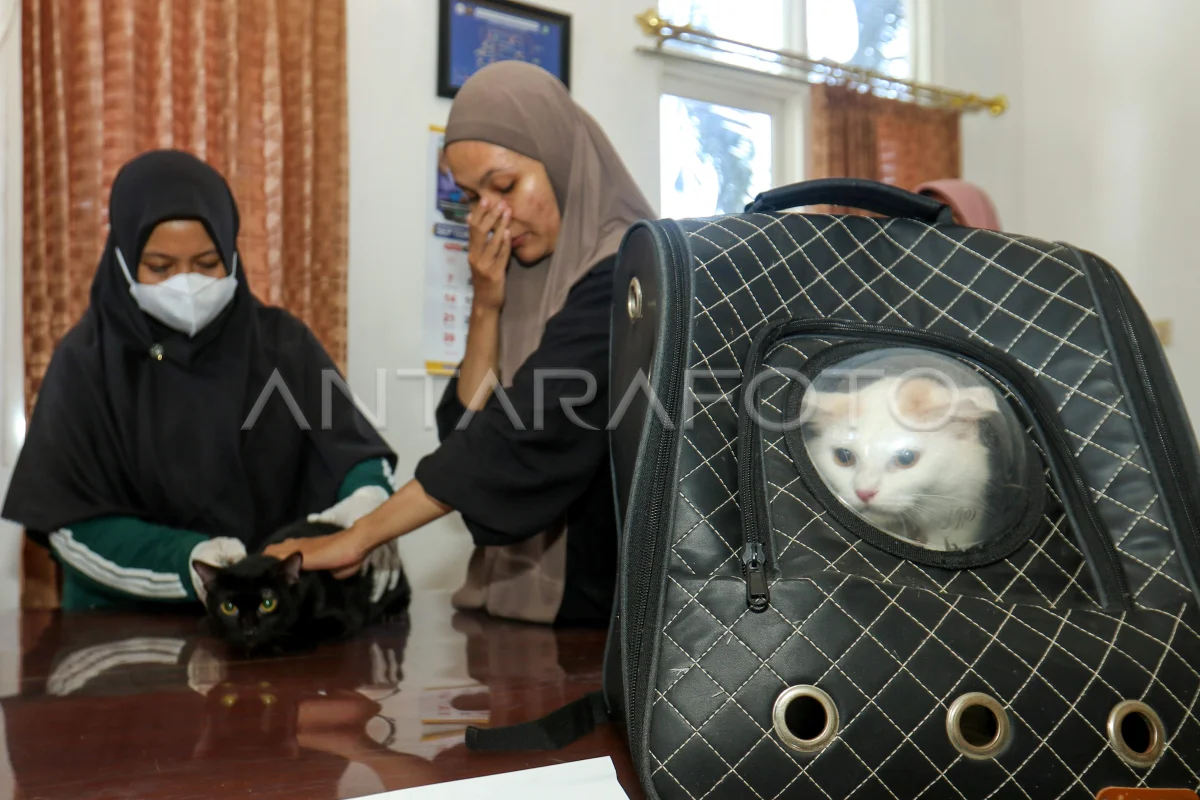 Petugas Veteriner memberikan vaksin kepada kucing di Rumah Sakit Hewan (RSH) Banyuwangi, Jawa Timur, Selasa (30/9/2025). Dalam rangka memperingati Hari Rabies Sedunia, Dinas Pertanian dan Pangan Banyuwangi memberikan layanan vaksinasi dan obat cacing gratis kepada 250 hewan peliharaan dan 100 hewan liar sebagai upaya menjaga kesehatan hewan khususnya kucing dan anjing. ANTARA FOTO/Budi Candra Setya/rwa.