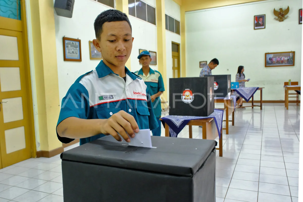 Seorang siswa memasukkan surat suara saat pemilihan ketua OSIS di SMK Katholik Pangudi Luhur Muntilan, Magelang, Jawa Tengah, Selasa (30/9/2025). Pemilihan ketua OSIS yang dilakukan seperti layaknya pemilihan kepala daerah bertujuan untuk pendidikan demokrasi sekaligus untuk mengajak pemilih pemula berpartisipasi pada pilkada maupun pemilu mendatang. ANTARA FOTO/Anis Efizudin/rwa.