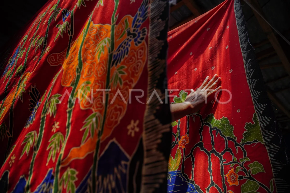 Perajin menata batik tulis di rumah produksi Rangsang Batik Sae, Lumajang, Jawa Timur, Rabu (1/10/2025). Rumah produksi batik tulis tersebut mengangkat potensi Lumajang melalui motif pisang, gunung, dan tari topeng dengan pewarna alami yang dipasarkan seharga Rp200 ribu hingga Rp3,5 juta ke berbagai daerah di Indonesia. ANTARA FOTO/Irfan Sumanjaya/foc.