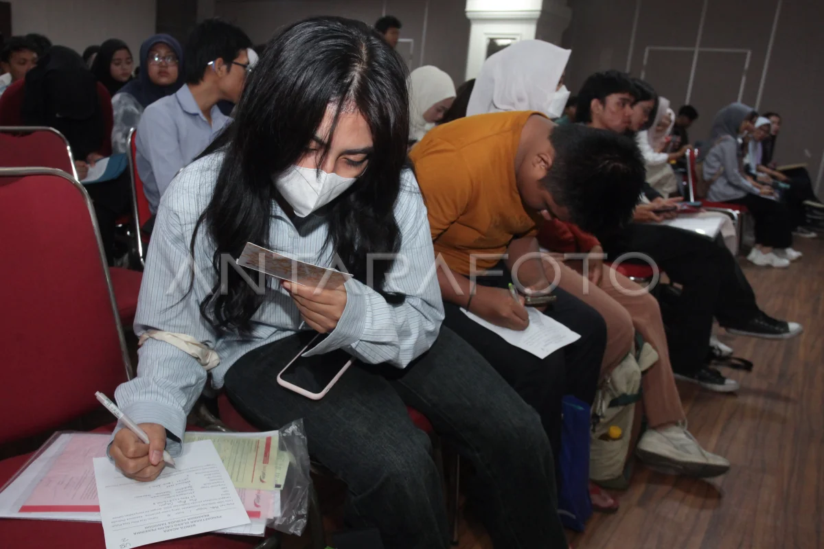 Sejumlah mahasiswa melengkapi dokumen saat pendaftaran ulang Beasiswa Pemuda Tangguh 2025 di Surabaya, Jawa Timur, Rabu (1/10/2025). Pemerintah Kota Surabaya menetapkan sebanyak 2.766 mahasiswa yang berdomisili di Surabaya dinyatakan lolos sebagai penerima beasiswa dalam program Besiswa Pemuda Tangguh untuk periode September 2025, dan total secara keseluruhan pada tahun 2025 Pemkot Surabaya menerima 5.908 mahasiswa sebagai penerima beasiswa tersebut. ANTARA FOTO/Didik Suhartono/tom.