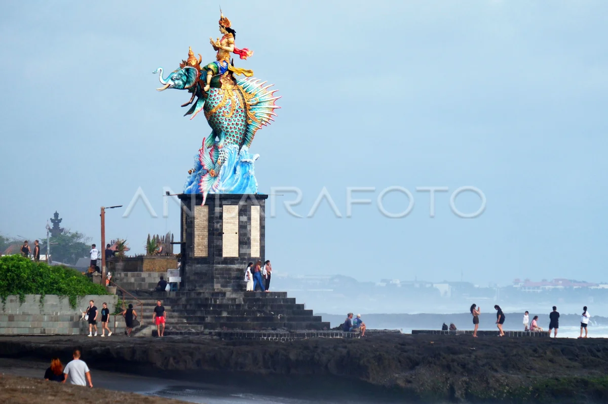 Wisatawan mancanegara menikmati suasana di dekat patung gajah mina, Pantai Pererenan, Badung, Bali, Rabu (1/10/2025). Kantor Wilayah Direktorat Jenderal Pajak (DJP) Bali mencatat sektor pariwisata mendongkrak realisasi penerimaan pajak di Pulau Dewata pada Agustus 2025 mencapai Rp10,27 triliun atau tumbuh 9,97 persen dibandingkan periode sama di tahun lalu yakni sebesar Rp9,34 triliun, seiring dengan jumlah kedatangan wisatawan mancanegara selama Januari-Agustus 2025 mencapai 4,8 juta orang atau naik 12,4 persen dibandingkan periode sama di tahun 2024. ANTARA FOTO/Nyoman Hendra Wibowo/tom.