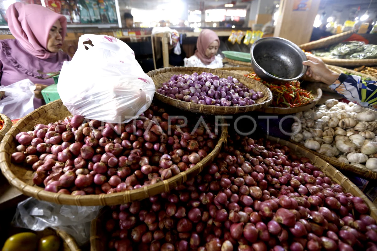 Pedagang membungkus pesanan pembeli di lapak bumbu masakan di Pasar Sentral, Kota Gorontalo, Gorontalo, Kamis (2/10/2025). Badan Pusat Statistik (BPS) mencatat pada bulan September 2025, Provinsi Gorontalo mengalami deflasi bulan ke bulan 0,12 persen dan bawang merah menjadi komoditas penyumbang utama deflasi dengan andil 0,30 persen disusul beras 0,14 persen, cumi-cumi 0,06 persen, angkutan udara 0,03 persen, tomat 0,02 persen, ikan teri 0,02 persen, ikan bubara 0,01 persen, pengharum cucian 0,01 persen dan parfum 0,01 persen. ANTARA FOTO/Adiwinata Solihin/bar