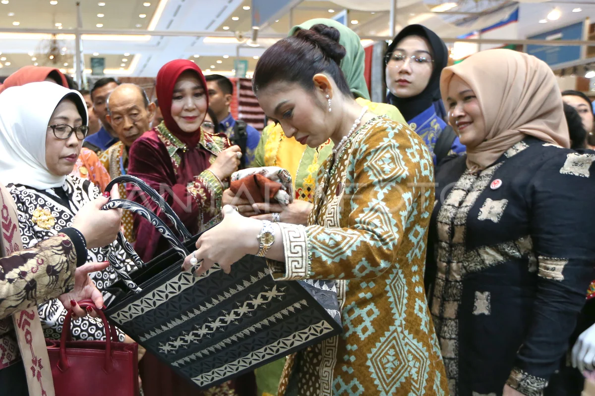 Ketua Umum Dekranas Selvi Gibran Rakabuming (tengah) disambut Wali Kota Banda Aceh Illiza Saâaduddin Djamal (ketiga kiri) melihat hasil produk UMKM Aceh usai pembukaan International Handicraft Trade Fair (INACRAFT) 2025 Vol 4 di Jakarta International Convention Center, Jakarta, Kamis (2/10/2025). Pameran kerajinan (INACRAFT 2025) terbesar di Asia Tenggara ini menghadirkan sebanyak 843 pelaku UMKM dari berbagai daerah di Indonesia yang bertujuan untuk mempromosikan karya kerajinan lokal serta memperkuat pasar domestik dan membuka peluang ekspor ke mancanegara. ANTARA FOTO/Irwansyah Putra/agr *** Local Caption ***