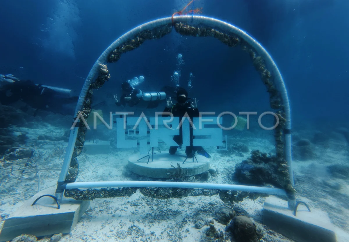 Petugas Balai Taman Nasional Wakatobi (BTNW) bersama perwakilan Kantor Perwakilan Bank Indonesia Provinsi Sulawesi Tenggara memasang transplantasi karang di Pantai Wambuliga saat aksi konservasi transplantasi karang dan pelepasan tukik di Wakatobi, Sulawesi Tenggara, Sabtu (4/10/2025). Aksi konservasi tersebut bagian dari kegiatan Wakatobi Festival and Expo (Wave) 2025 bertujuan untuk menjaga kondisi dan kelestarian ekosistem terumbu karang, serta menanggulangi populasi penyu yang semakin menurun akibat perburuan dan degradasi lingkungan. ANTARA FOTO/Jojon/tom.