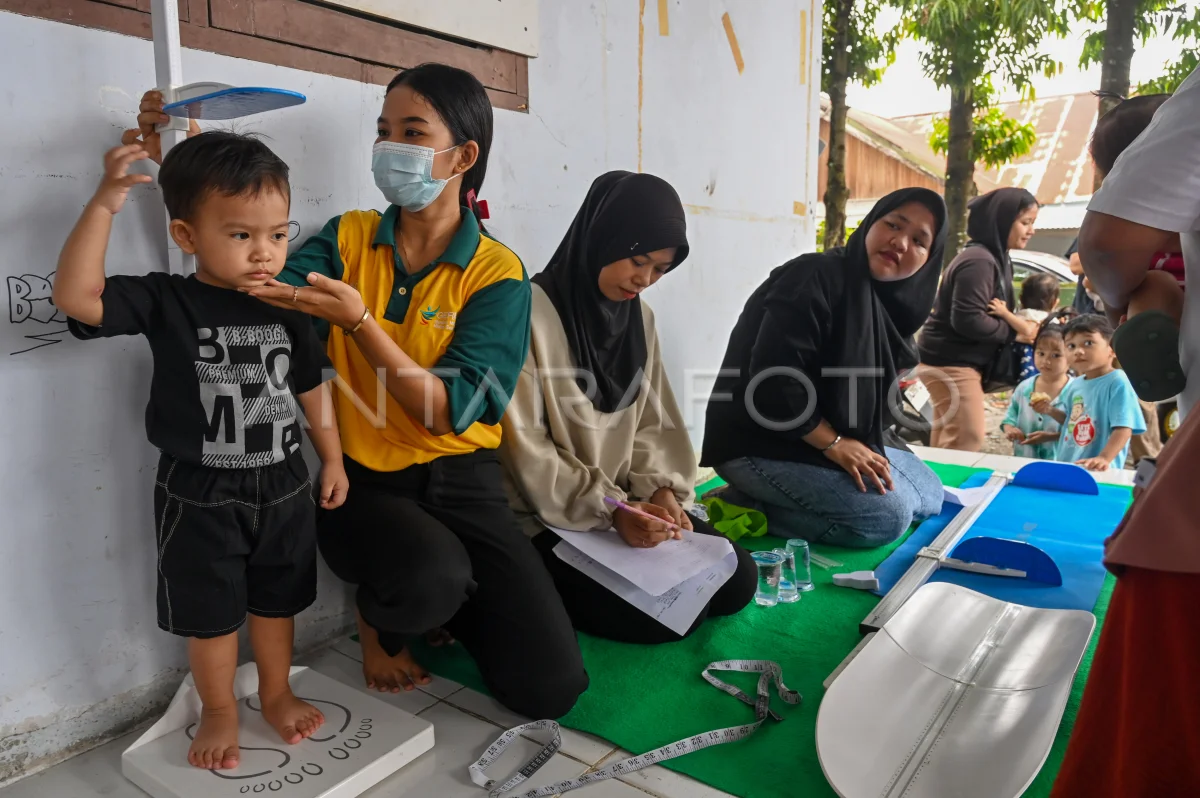 Petugas mengukur tinggi badan seorang anak di Posyandu Mawar, Kelurahan Palupi, Palu, Sulawesi Tengah, Sabtu (4/10/2025). Sejak tahun lalu, Kementerian Kesehatan memperluas layanan primer posyandu yang sebelumnya hanya fokus pada kesehatan ibu dan anak menjadi pusat layanan kesehatan untuk semua siklus hidup, dari bayi hingga lansia dan dampaknya telah terasa pada deteksi dini penyakit kronis, kesadaran kesehatan keluarga dan juga akses kesehatan yang lebih mudah dan murah. ANTARA FOTO/Basri Marzuki/tom.
