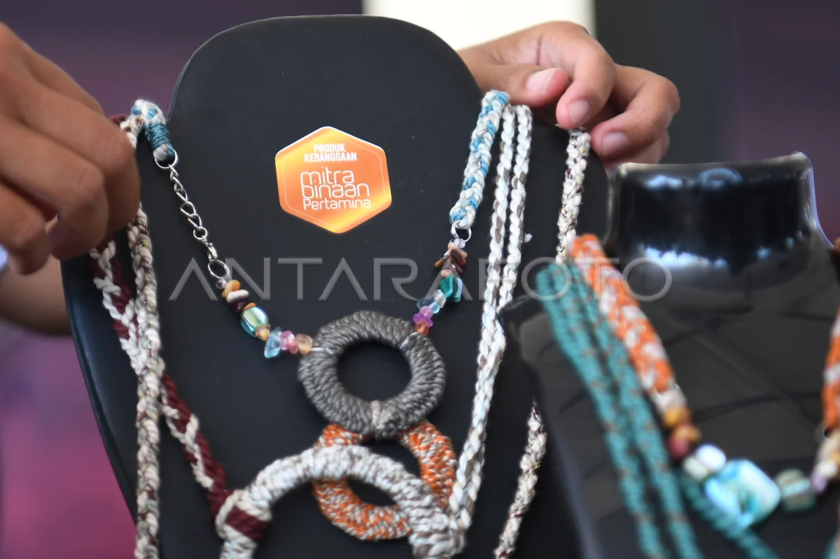 Pengunjung melihat kerajinan UMKM binaan Pertamina saat gelaran Pertamina Grand Prix of Indonesia 2025 di kawasan Sirkuit Internasional Pertamina Mandalika, Lombok Tengah, Nusa Tenggara Barat, Minggu (5/10/2025). Pertamina menghadirkan 20 UMKM binaan asal Lombok sebagai bagian untuk memperkenalkan budaya, kerajinan hingga makanan dan minuman khas daerah setempat kepada pengunjung dan wisatawan mancanegara. ANTARA FOTO/Akbar Nugroho Gumay/nym.