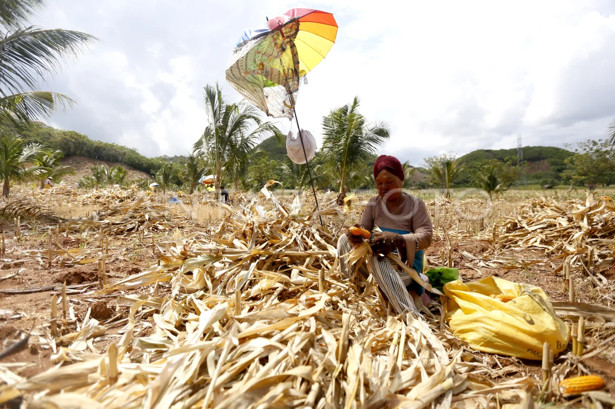 Petani memetik jagung di area lahan jagung di Kabupaten Pohuwato, Gorontalo, Minggu (5/10/2025). Hasil kerangka sampel area (KSA) Badan Pusat Statistik (BPS) mencatat luas panen jagung pipilan di Indonesia pada Agustus 2025 seluas 0,23 juta hektare, sedangkan jagung pipilan kering dengan kadar air 14 persen pada Agustus 2025 sebanyak 1,39 juta ton. ANTARA FOTO/Adiwinata Solihin/foc.
