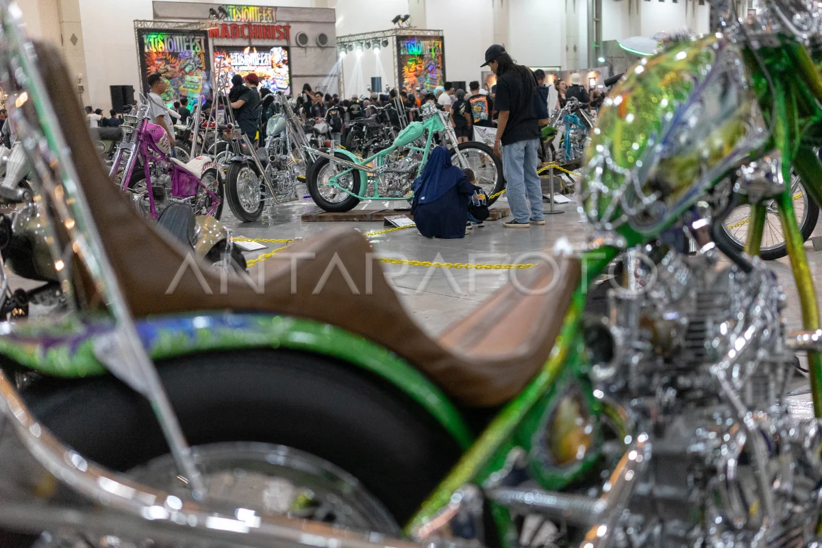 Pengunjung mengamati kendaraan pada pameran Kustom Kulture Festival (Kustomfest) 2025 bertema MADCHINIST di Jogja Expo Centre (JEC), Bantul, D.I Yogyakarta, minggu (5/10/2025). Acara yang menampilkan ratusan karya modifikasi kendaraan dari builder dari berbagai negara seperti Malaysia, Singapura, Thailand hingga Jepang tersebut menjadi ajang pertemuan akbar bagi pecinta otomotif serta ruang ekspresi bagi para builder (pemodifikasi). ANTARA FOTO/Andreas Fitri Atmoko/foc.