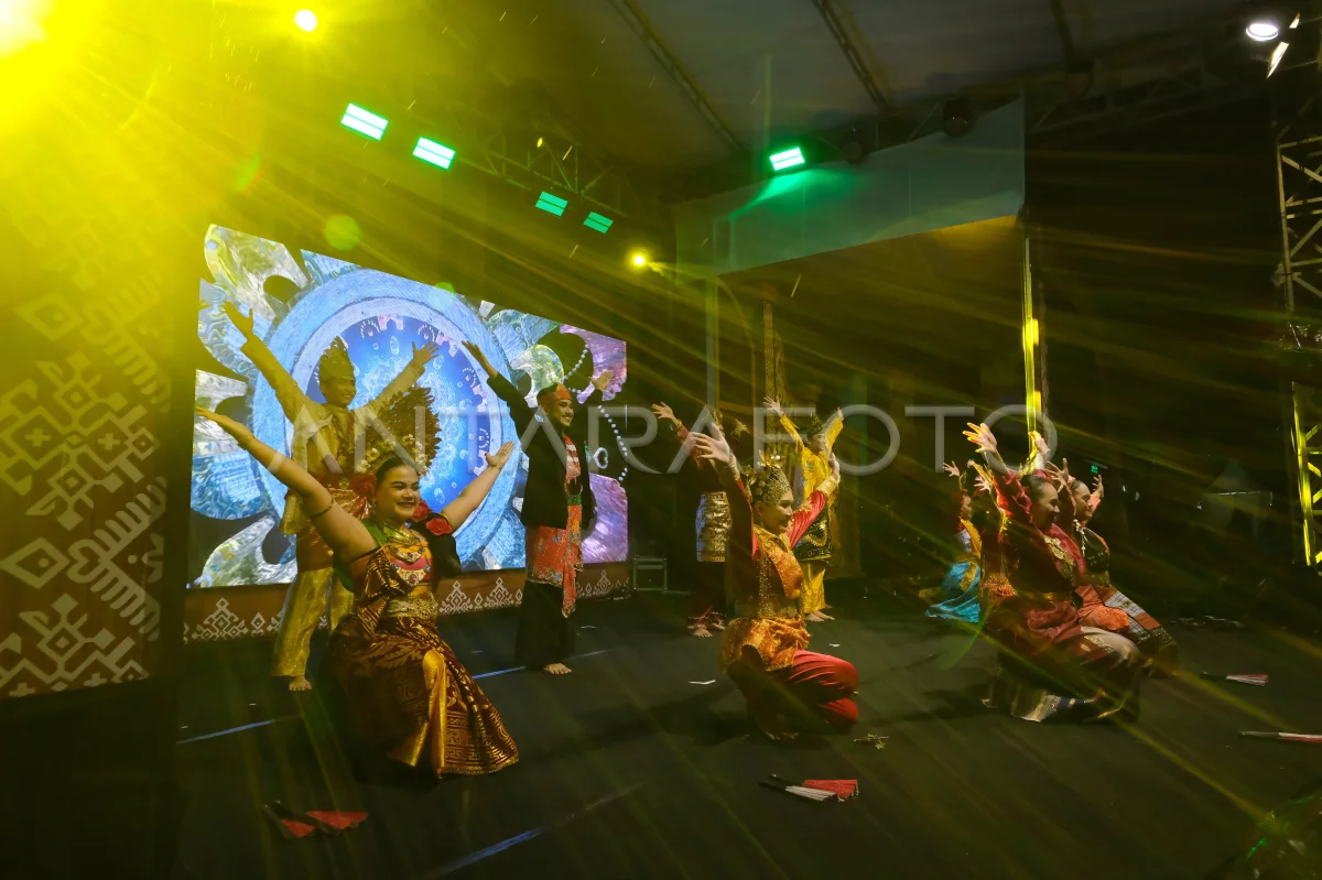Sejumlah penari sanggar menampilkan tarian pada Pagelaran Sanggar-Sanggar di Museum Kalimantan Barat, Pontianak, Senin (6/10/2025) malam. Pagelaran Sanggar-Sanggar menjadi bagian dari Sepekan Festival Museum 2025 bertema Museum Gerbang Peradaban Nusantara yang digelar untuk memperkuat peran museum sebagai ruang pembelajaran sejarah, budaya, dan kreativitas generasi muda. ANTARA FOTO/Jessica Wuysang/nz