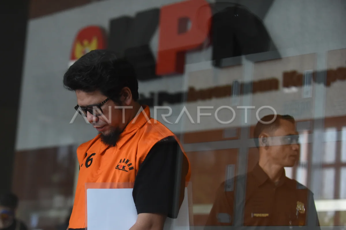 Tersangka kasus dugaan korupsi pencairan kredit usaha PT Bank Perkreditan Rakyat (BPR) Bank Jepara Artha, Ahmad Nasir (kiri) berjalan menuju mobil tahanan usai menjalani pemeriksaan di Gedung Merah Putih KPK, Jakarta, Selasa (7/10/2025). Pemeriksaan lanjutan bagi mantan Kepala Divisi Bisnis, Literasi dan Inklusi Keuangan BPR Bank Jepara Artha tersebut terkait kasus dugaan korupsi pencairan kredit usaha PT BPR Bank Jepara Artha (Perseroda) tahun 2022-2024 yang mengakibatkan kerugian negara sekitar Rp254 miliar. ANTARA FOTO/Indrianto Eko Suwarso/tom.