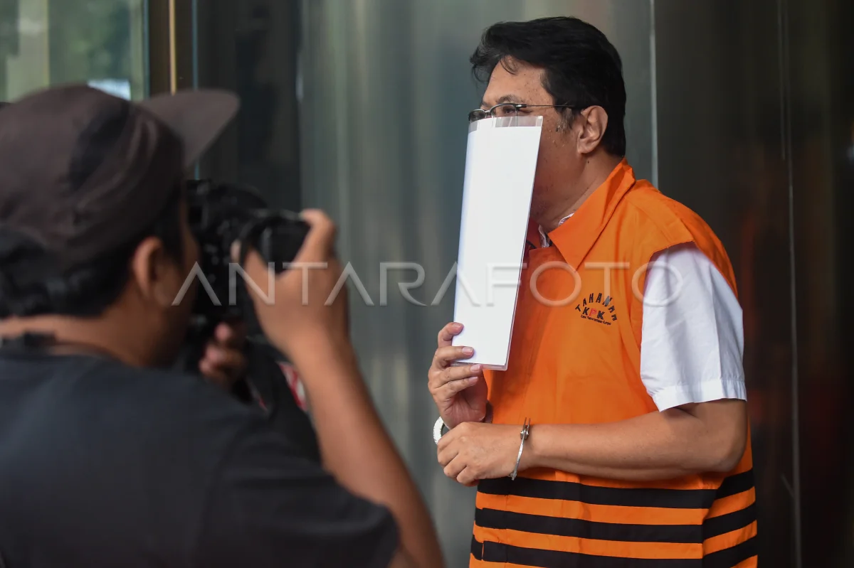 Tersangka kasus dugaan korupsi pencairan kredit usaha PT Bank Perkreditan Rakyat (BPR) Bank Jepara Artha, Jhendik Handoko (kanan) berjalan menuju mobil tahanan usai menjalani pemeriksaan di Gedung Merah Putih KPK, Jakarta, Selasa (7/10/2025). Pemeriksaan lanjutan terhadap mantan Direktur Utama BPR Bank Jepara Artha tersebut terkait kasus dugaan korupsi pencairan kredit usaha PT BPR Bank Jepara Artha (Perseroda) tahun 2022-2024 yang mengakibatkan kerugian negara sekitar Rp254 miliar. ANTARA FOTO/Indrianto Eko Suwarso/tom.