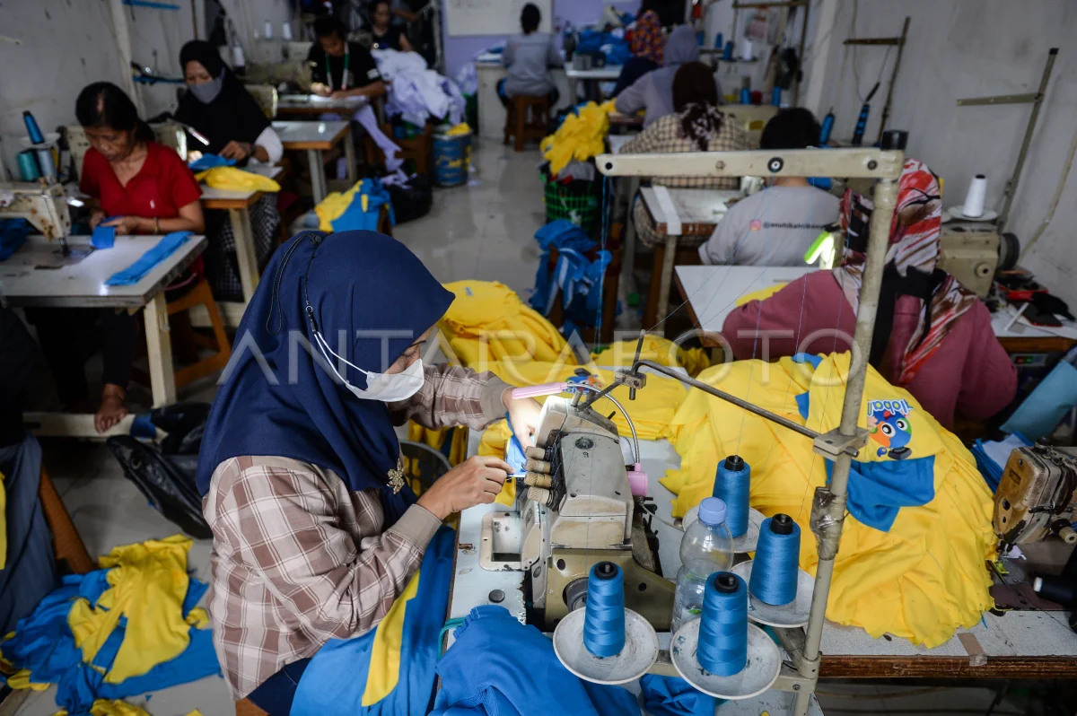 Pekerja menyelesaikan pembuatan busana di Anuhi Kahti Konveksi, Kota Tangerang, Banten, Selasa (7/10/2025). Kementerian Perindustrian mencatat lonjakan kinerja di sektor Industri Kimia, Farmasi dan Tekstil (IKFT) hingga pertengahan 2025 yang berkontribusi sebesar 3,82 persen terhadap produk domestik bruto (PDB) nasional dan menunjukkan peran strategis sektor tersebut sebagai pendukung pertumbuhan ekonomi yang inklusif dan berkelanjutan. ANTARA FOTO/Putra M. Akbar/tom.