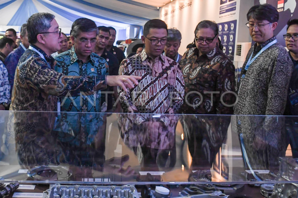 Menteri Koordinator (Menko) Bidang Perekonomian Airlangga Hartarto (kedua kanan) berbincang bersama Presiden Toyota Motor Corporation Koji Sato (kanan), Menteri Luar Negeri Sugiono (tengah), Menteri Tenaga Kerja Yassierli (kedua kiri), dan President Director of PT Toyota Motor Manufacturing Indonesia (TMMIN) Nandi Julyanto (kiri) pada acara pelepasan ekspor 3 juta unit kendaraan utuh (completely built up/CBU) produksi Toyota Indonesia di TMMIN Karawang Plant 1, Karawang, Jawa Barat, Kamis (9/10/2025). Ekspor tersebut selain memperkuat peran Toyota Indonesia sebagai penggerak utama pertumbuhan sektor otomotif, juga menciptakan lapangan kerja dan mendorong pengembangan teknologi otomotif terbaru di dalam negeri. ANTARA FOTO/Muhammad Adimaja/bar