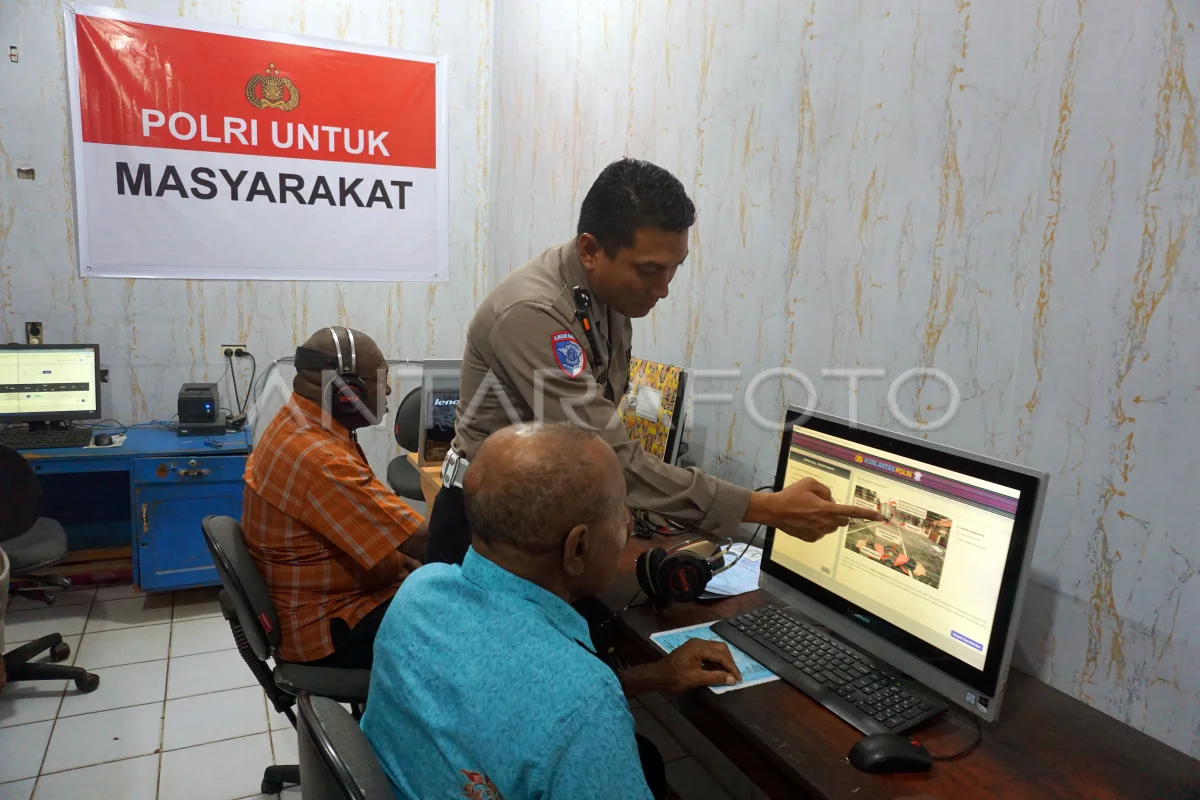 Petugas Kepolisian memberikan pengarahan kepada kepala suku saat tes teori di kantor satuan lalu lintas Polresta Sorong Kota di Kota Sorong, Papua Barat Daya, Kamis (14/8/2025). Dalam rangka memeriahkan Hari Kemerdekaan Republik Indonesia ke 80 sekaligus mengajak masyarakat adat taat berlalu lintas, Polresta Sorong Kota memberikan pelayanan pembuatan Surat Ijin Mengemudi (SIM) gratis bagi 42 Kepala Suku asli Papua di wilayah tersebut. ANTARA FOTO/Olha Mulalinda/bar