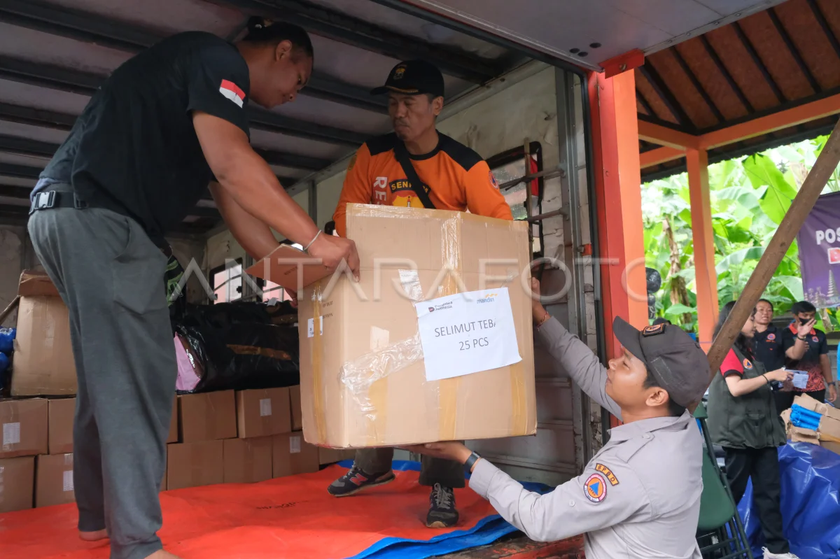 Petugas memasukkan logistik bencana banjir ke dalam mobil saat proses penyaluran di Kantor BPBD Provinsi Bali, Denpasar, Bali, Senin (15/9/2025). Pos komando penanganan darurat bencana cuaca ekstrem yang dibuka Kantor BPBD Provinsi Bali tersebut menjadi pusat tempat logistik untuk disalurkan kepada warga yang terdampak bencana banjir di Bali diantara pakaian, makanan, obat-obatan, tenda, kebutuhan mandi, kebutuhan bayi, dan perlengkapan tidur. ANTARA FOTO/Nyoman Hendra Wibowo/YU