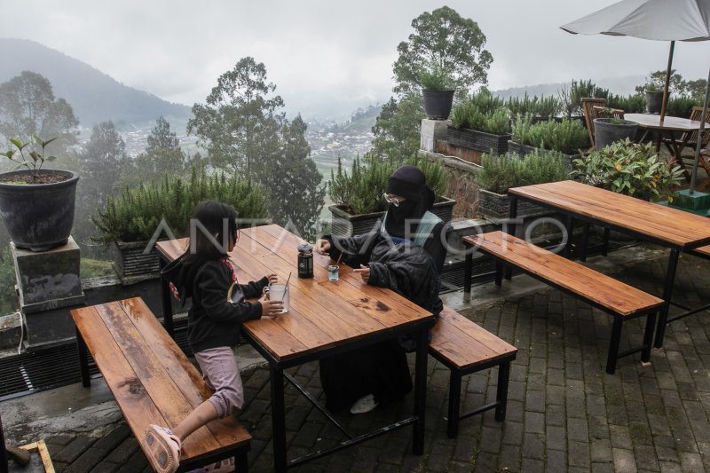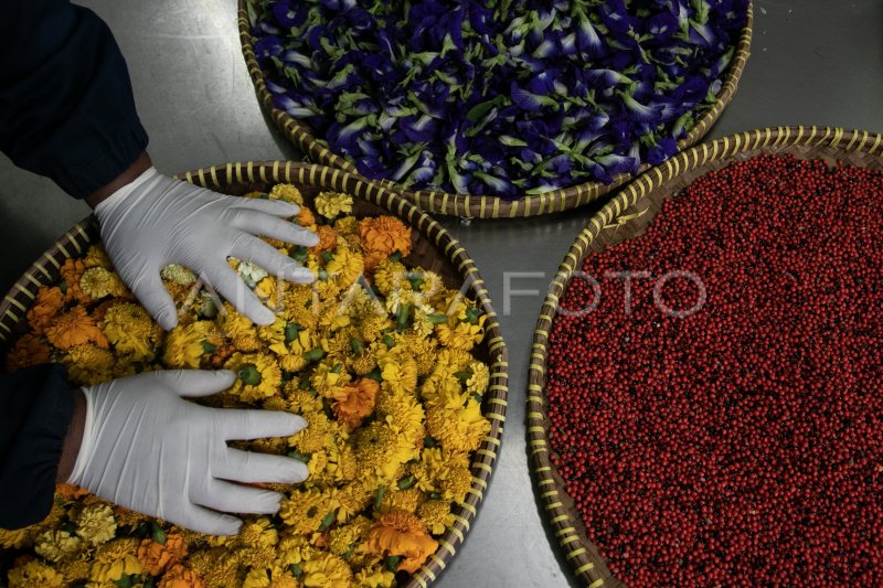 Wisatawan enjoys traditional herbal medicine from Jamu Rosmarin Cafe in Aromatic Garden Tlogodringo.
