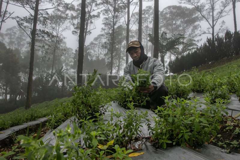 Pegawai UPF Yankestrad Tawangmangu Supatno harvested medicinal plants in Aromatic Garden Tlogodringo.
