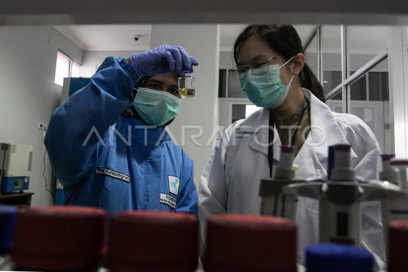 Staf laboraturium testing UPF Yankestad Tawangmangu Siti Lestari (left) streamline students to research medicinal plants.