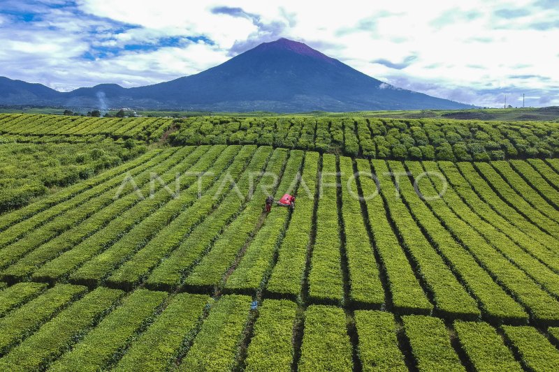 The sound of tea picking machine sibling the quick step of workers in the green half of the wood tea plantation Aro foot Mount Kerinci, Jambi at a height of 3.805 mdpl. Every six days a week, dozens of workers harvest the best tea leaves from the second-week tea plantation after the Himalaya Darjeeling.