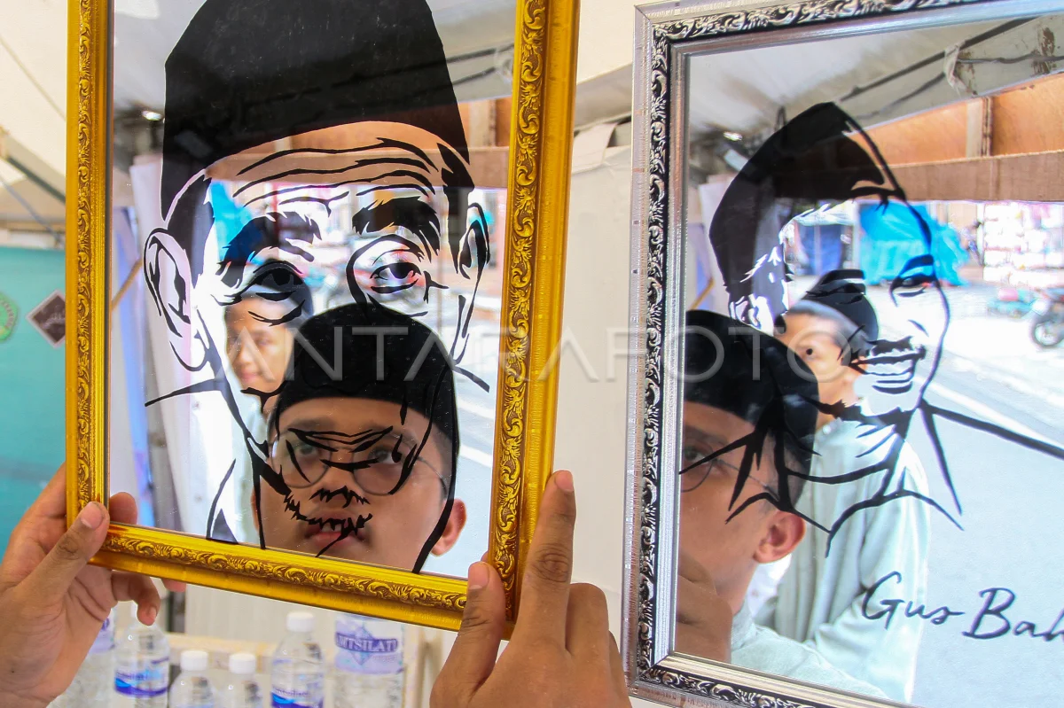 Santri organizes the work of the painting art of ulama KH face glass. Maimun Zubair and Gus Baha when the exhibition of UMKM products on the commemoration of National Santri Day (HSN) 2025 in the Holy District, Central Java, Tuesday (21/10/2025). The UMKM product exhibition followed by 72 business players is a series of commemoration of National Santri Day as well as efforts to increase the economy of society, messages and santri in Central Java. ANTARA FOTO/Nirza/agr/foc.